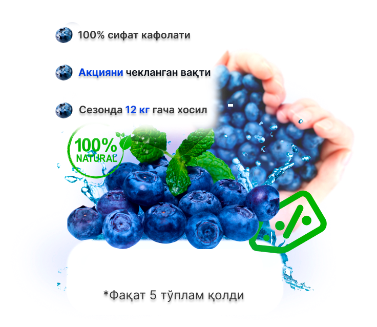 Ўз-ўзини йетиштириш учун Голубика кўчатлари тўпламини якуний сотиши