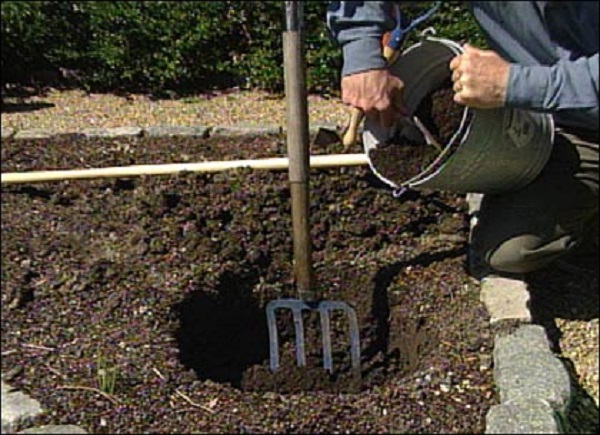 Чуқур 40×40 см ўлчамда қазилади, тубига дренаж (шағал, қум) қўйилади, кўчат эҳтиёткорлик билан ўрнатилади ва унумдор тупроқ билан кўмилади. Экилгандан сўнг мўл-кўл суғоринг.