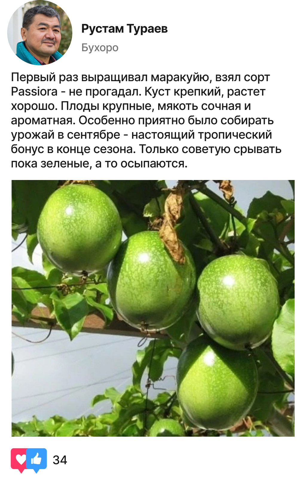 Ўзбекистон боғбонларидан Passiora маракуйя навини етиштириш бўйича ҳақиқий тажриба!